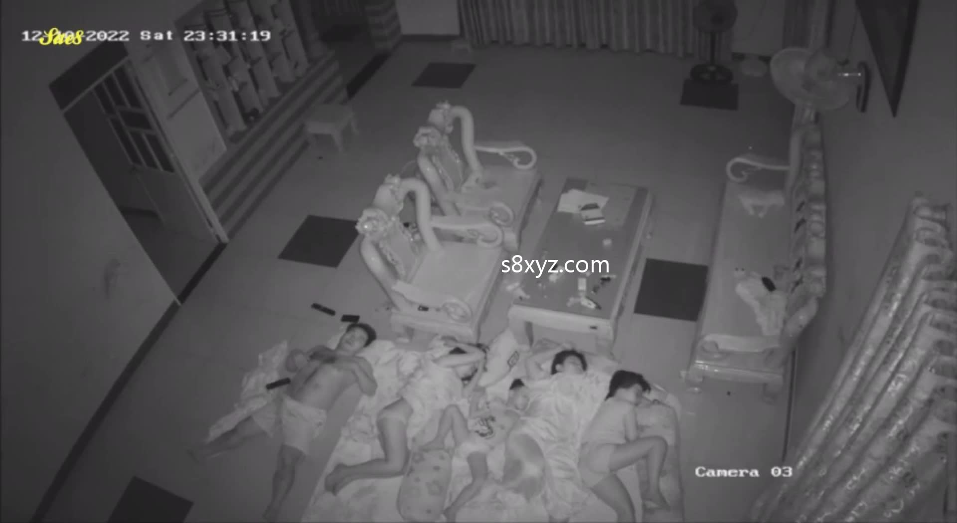 家庭监控夫妻带孩子睡觉
