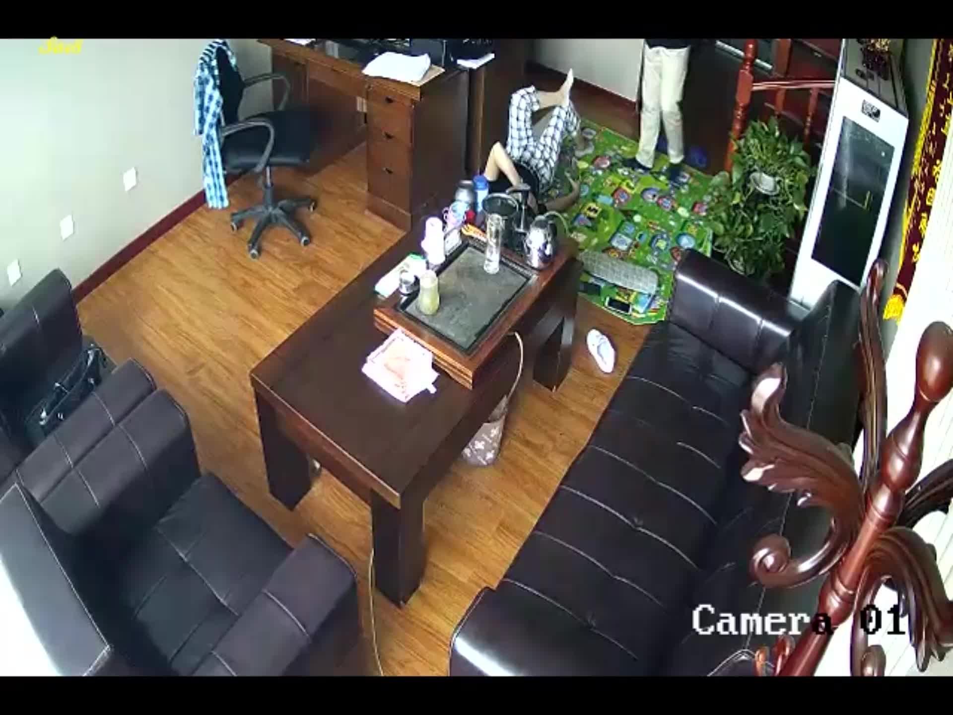 经理和公司出纳勾搭上了午休时间在办公室偷情被监控拍下。