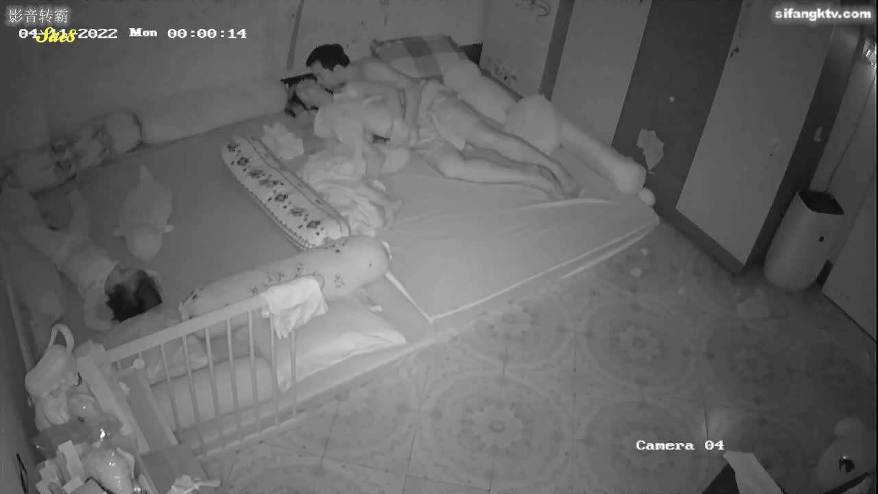 家庭摄像头偷拍夫妻趁着小孩睡觉后赶紧激情做爱。