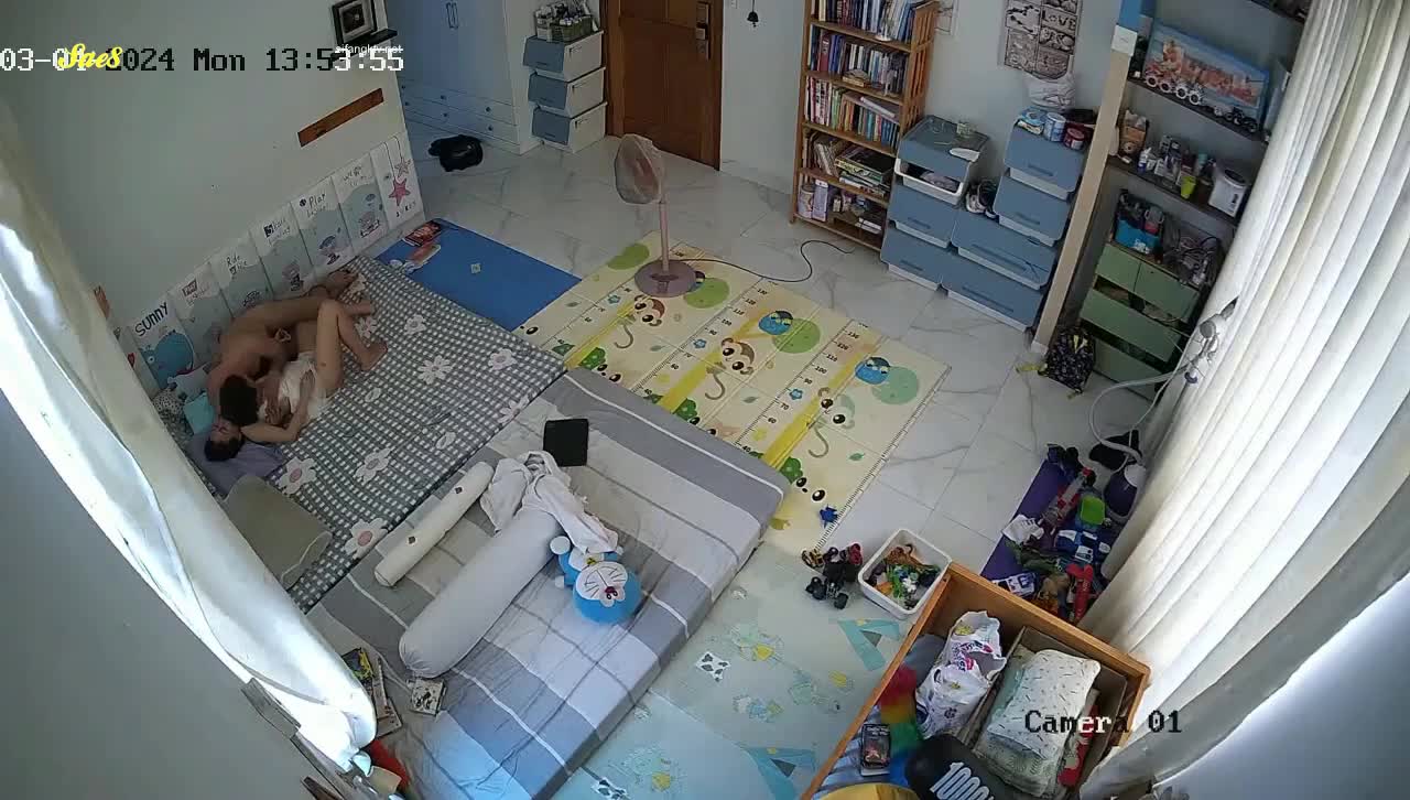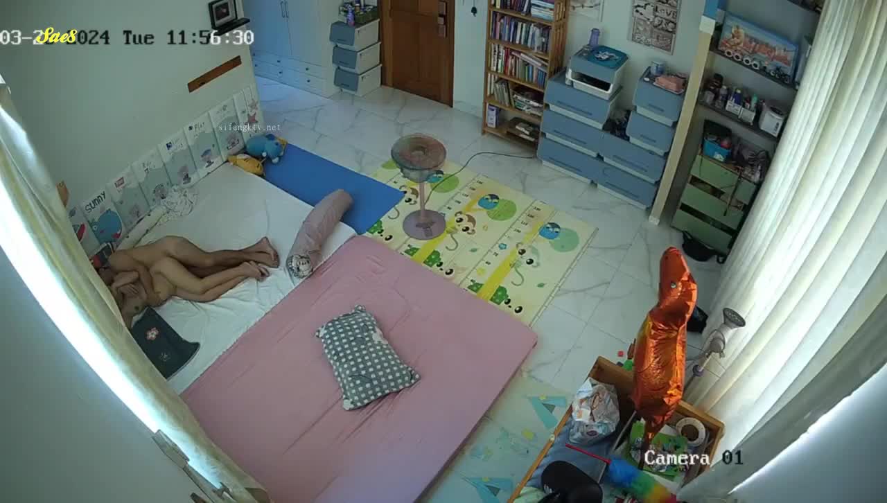 家庭摄像头把孩子送去幼儿园后夫妻肆无忌惮尽情的爱爱。